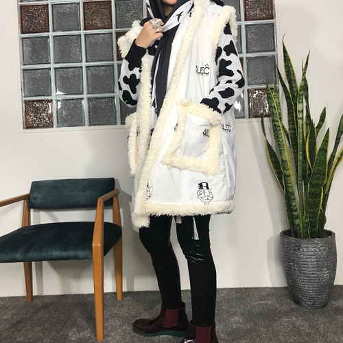 وست پافر تدی و مموری ضد آب گلدوزی کلاهدار سفید با دو جیب کیوت، استایل شما را جذابتر می کند. این پافر تدی با گلدوزی های خاص مشکی و ترکیب پارچه ی مموری ضد آب و تدی سفید، بدون تلاش زیاد، به استایل های پاییزی و زمستانی و حتی نوروزی شما جان می دهد.